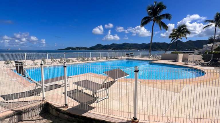 Genießen Sie Ihren Aufenthalt im Superbe T2 Sole e Mare NBBC sur la plage de Baie Nettlé in Saint Martin. Das Apartment bietet einen Außenpool, einen eigenen Strandbereich und eine Terrasse mit Meerblick. Die Unterkunft ist ideal für Aktivitäten wie Wandern, Schnorcheln und Tennis. Das klimatisierte Apartment verfügt über ein Schlafzimmer, ein Wohnzimmer und eine voll ausgestattete Küche. Handtücher und Bettwäsche werden gestellt. In der Nähe finden Sie wunderschöne Strände und der Flughafen ist nur 8 km entfernt.