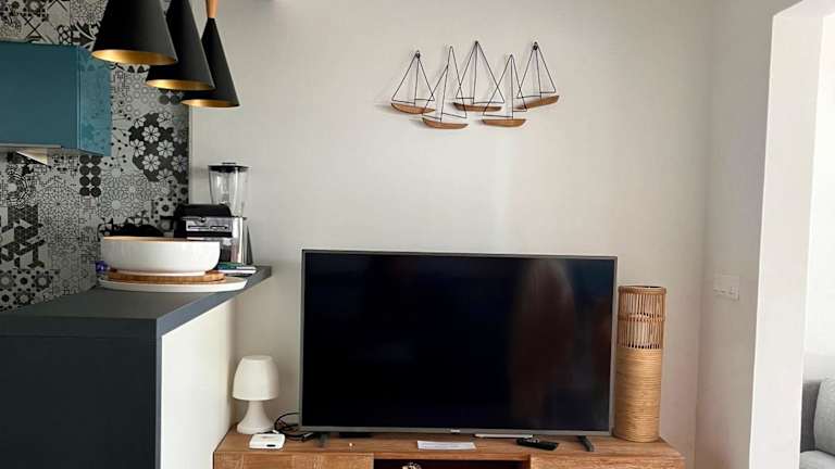 Das klimatisierte Apartment im Superbe T2 Sole e Mare NBBC sur la plage de Baie Nettlé verfügt über ein komfortables Schlafzimmer, ein gemütliches Wohnzimmer und eine voll ausgestattete Küche mit Kühlschrank und Kaffeemaschine. Das Badezimmer ist mit einer Dusche und einem Haartrockner ausgestattet. Handtücher und Bettwäsche werden gestellt, um Ihren Aufenthalt so angenehm wie möglich zu gestalten.