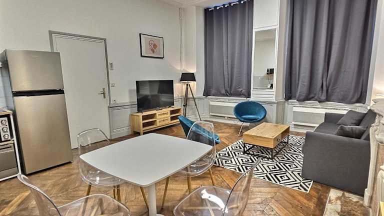 Superbe, T2 Spacieux bietet eine großzügige Fläche von 50 m² im Stadtzentrum und ist eine neu ausgestattete Ferienwohnung im Erdgeschoss. Die Unterkunft ist privat geführt und richtet sich an Gäste ab 18 Jahren. Feierlichkeiten wie Junggesellenabschiede sind nicht erlaubt.