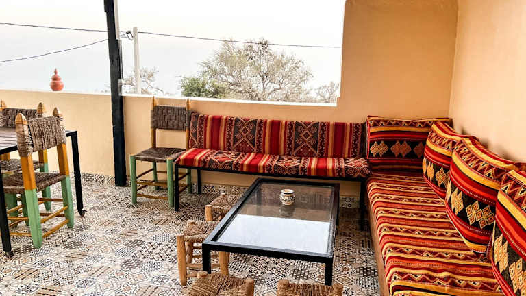 Die Unterkunft Superbo Stay Sea View Surf House near Taghazout Panoramic Terrace bietet kostenloses WLAN, eine Terrasse und wird von einem privaten Gastgeber geführt. Ein Check-in ist ab 14:00 Uhr bis 00:00 Uhr möglich, während der Check-out zwischen 10:00 Uhr und 12:00 Uhr erfolgt. Besonderheiten umfassen das Verbot von Junggesellenabschieden und ähnlichen Feiern sowie das Mindestalter für den Check-in von 18 Jahren.