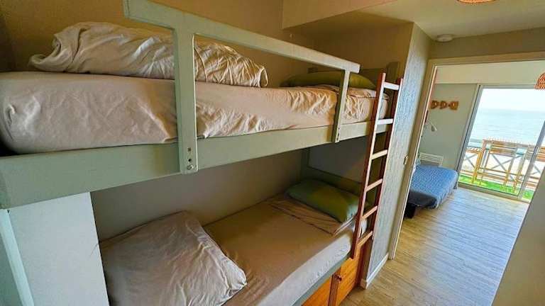 Sur la plage de Bonne Source les pieds dans l'eau ist eine Ferienwohnung im ersten Stock mit einer Terrasse. Die Unterkunft bietet eine direkte Lage am Strand und umfasst Annehmlichkeiten wie eine Veranda oder ein Patio sowie kostenfreien Privatparkplatz. WLAN ist im gesamten Haus ebenfalls kostenfrei verfügbar. Die Unterbringung wird von einem privaten Gastgeber verwaltet, wobei das Mindestalter für den Check-in 18 Jahre beträgt. Haustiere sind nicht gestattet und Feiern wie Junggesellenabschiede sind ebenfalls verboten.