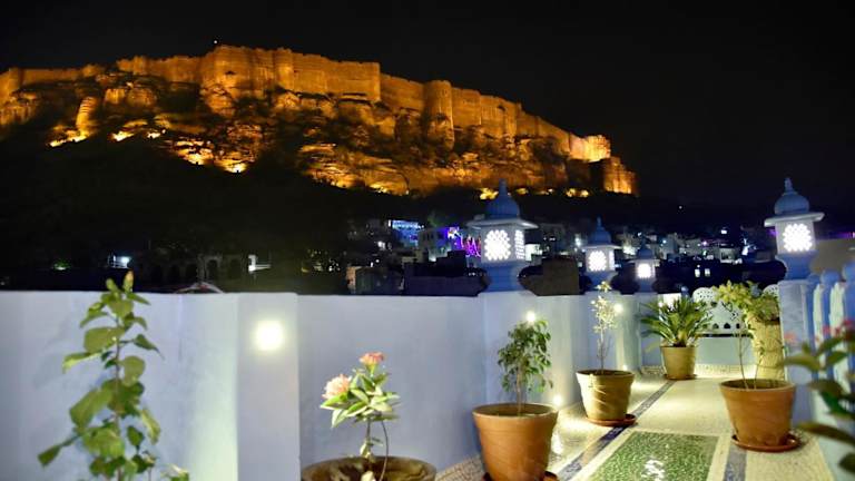 Neben den komfortablen Zimmern und dem Restaurant bietet das Suraj Haveli auch eine Sonnenterrasse, auf der Sie sich entspannen und die herrliche Aussicht auf die Berge genießen können. Nutzen Sie die Gelegenheit, die Umgebung zu erkunden und besuchen Sie das Mehrangarh Fort oder das Umaid Bhawan Palace Museum. Das Suraj Haveli ist der perfekte Ausgangspunkt, um die Schönheit von Jodhpur zu entdecken.