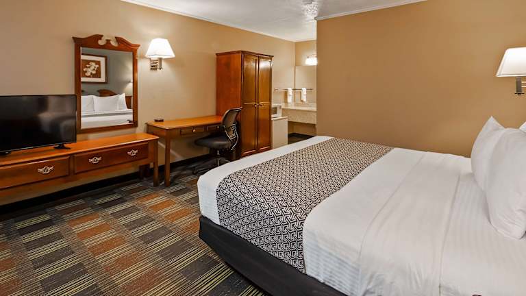 Das Guesthouse Acorn Inn in Cameron, Missouri, ist eine ideale Wahl für Reisende, die eine komfortable Unterkunft suchen und die Nähe zum Wallace State Park schätzen. Das Hotel bietet einen saisonalen Außenpool und kostenfreies WLAN. Die Zimmer sind gut ausgestattet und verfügen über einen Flachbild-Kabel-TV, einen Essbereich mit Mikrowelle, Kühlschrank und Kaffeemaschine sowie ein eigenes Bad mit Haartrockner. Ein kontinentales Frühstück wird täglich serviert und umfasst eine Vielzahl von Speisen. Das Hotel bietet auch malerische Gärten, eine 24-Stunden-Rezeption und kostenfreie Parkplätze. Der Golfplatz Cameron ist nur 6 km entfernt und das Zentrum von Kansas City erreichen Sie in etwa 45 Fahrminuten mit dem Auto.