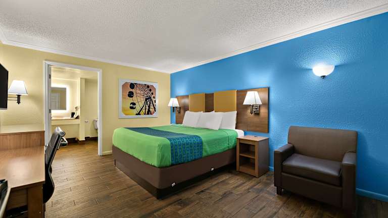 Die 50 klimatisierten Zimmer im SureStay Hotel by Best Western Clermont Theme Park West sind gemütlich eingerichtet und verfügen über Annehmlichkeiten wie einen Kühlschrank und einen LED-Fernseher. Kostenloses WLAN und Kabelempfang stehen ebenfalls zur Verfügung. Die eigenen Badezimmer sind mit Duschen und kostenlosen Toilettenartikeln ausgestattet. Zur weiteren Ausstattung gehören Safes, Schreibtische und Telefone für kostenlose Ortsgespräche.