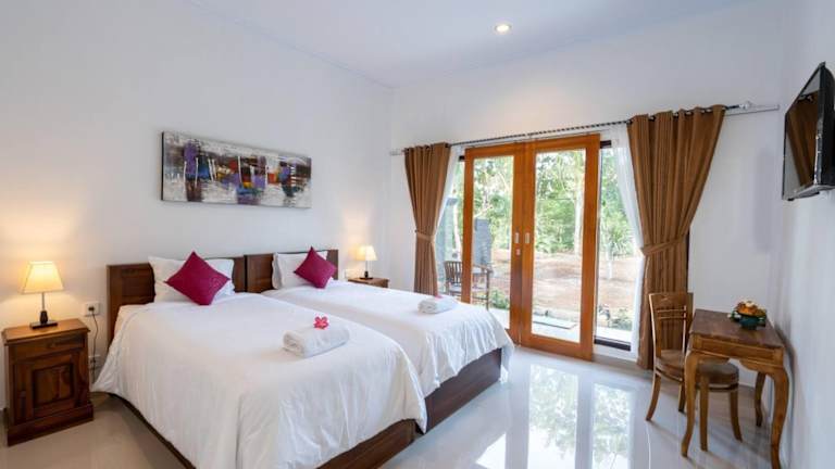 Die klimatisierten Unterkünfte im Hotel Surya Maha Bungallo bieten Ihnen Komfort und Entspannung. Jede Unterkunft verfügt über eine Terrasse, auf der Sie die frische Luft und den Blick auf den Pool genießen können. Zur weiteren Ausstattung gehören ein Flachbild-TV und ein eigenes Bad mit kostenfreien Pflegeprodukten. Die Zimmer sind geschmackvoll eingerichtet und bieten Ihnen einen angenehmen Rückzugsort nach einem ereignisreichen Tag.
