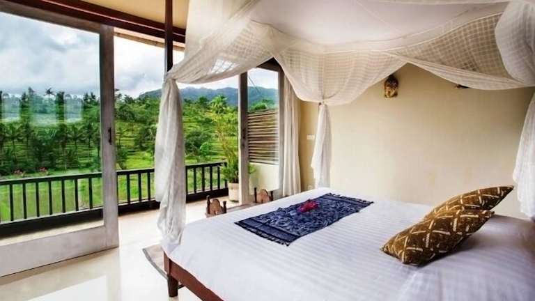 Die Bungalows in der Surya Shanti Villa Sidemen sind geschmackvoll eingerichtet und verfügen über moderne balinesische Elemente. Jeder Bungalow hat eine eigene Terrasse, von der aus Sie einen herrlichen Blick auf die grüne Umgebung genießen können. Die Zimmer sind mit halboffenen Bädern ausgestattet, die über eine Dusche, eine Badewanne und kostenfreie Pflegeprodukte verfügen. Das Resort bietet auch kostenfreies WLAN in allen Bereichen.