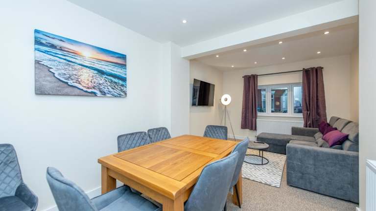 Das Sutton Cottage ist ein geräumiges Ferienhaus mit 4 Schlafzimmern und 3 Badezimmern, ideal für bis zu 9 Gäste. Es bietet modernes Wohnen mit einem Flachbild-TV, einer voll ausgestatteten Küche und einer Gemeinschaftslounge. Die Unterkunft ist eine Nichtraucherunterkunft, die von einem privaten Gastgeber betrieben wird. Anreise ist ab 16:00 bis 23:30 Uhr möglich, die Abreise sollte bis 10:00 Uhr erfolgen. Es gibt eine begrenzte Anzahl an Parkmöglichkeiten, die Verfügbarkeit ist jedoch eingeschränkt.