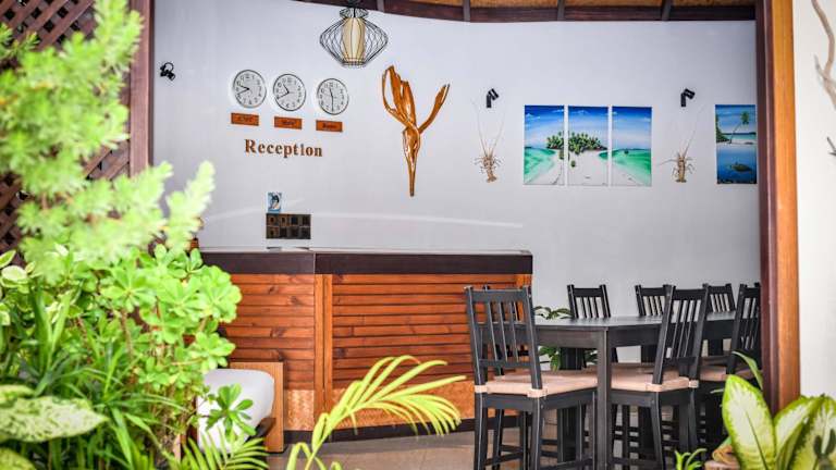 Das Suvaasa Inn bietet seinen Gästen einen eigenen Strandbereich, an dem Sie die Sonne genießen und im türkisblauen Wasser schwimmen können. Der Garten lädt zum Entspannen ein und bietet einen schönen Blick auf die Umgebung. In der Nähe gibt es auch viele Möglichkeiten für Outdoor-Aktivitäten wie Schnorcheln und Tauchen.