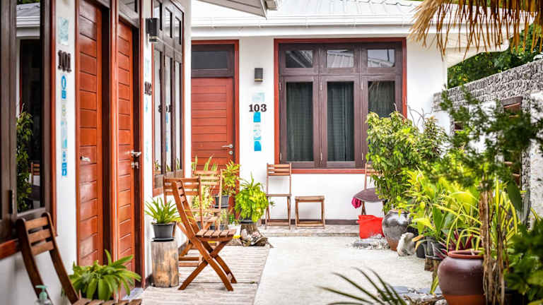 Das Suvaasa Inn in Omadhoo ist ein charmantes Hotel direkt am Strand, das seinen Gästen einen entspannten und erholsamen Aufenthalt bietet. Mit seinen komfortablen und klimatisierten Zimmern, dem schönen Garten und dem eigenen Strandbereich ist es der perfekte Ort, um die Schönheit der Umgebung zu genießen. Das leckere Frühstück mit einer Auswahl an kontinentalen, amerikanischen oder asiatischen Speisen rundet das Angebot ab.
