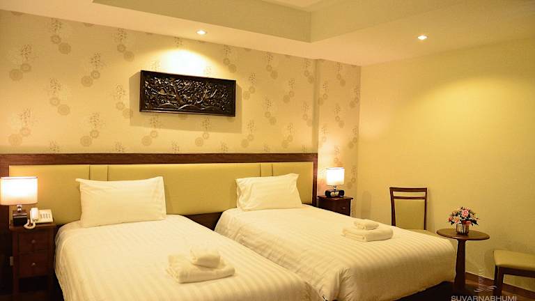 Die geräumigen Zimmer im Suvarnabhumi Ville Airport Hotel sind mit einem großen Flachbild-TV, einem Kühlschrank und einem Wasserkocher ausgestattet. Kostenfreies WLAN ist in allen Bereichen des Hotels verfügbar. Jedes Zimmer verfügt über ein eigenes Bad mit einer Warmwasserdusche, einem Haartrockner und kostenfreien Pflegeprodukten.