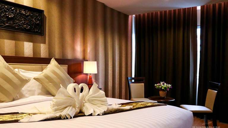 Das Suvarnabhumi Ville Airport Hotel bietet seinen Gästen einen angenehmen Aufenthalt in der Nähe des internationalen Flughafens. Die Zimmer sind komplett ausgestattet und bieten allen Komfort, den Sie für einen entspannten Aufenthalt benötigen. Das Hotel verfügt über einen Pool, ein Fitnesscenter und einen Wellnessbereich, in dem Sie sich verwöhnen lassen können. Die Bar auf dem Dach bietet einen atemberaubenden Blick auf die Stadt und serviert sowohl thailändische als auch internationale Gerichte.