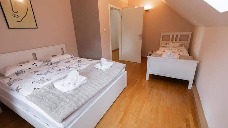 Das Suzana Iron's Apartment in Ljubljana ist die ideale Unterkunft für Ihren Aufenthalt in der Stadt. Mit einer günstigen Lage, nur 3,8 km von der Burg von Ljubljana entfernt, bietet das Apartment einen herrlichen Blick auf den Garten, kostenfreies WLAN und kostenlose Privatparkplätze. Das klimatisierte Apartment verfügt über 3 Schlafzimmer, eine voll ausgestattete Küche und ein Badezimmer mit Dusche und Haartrockner. Handtücher und Bettwäsche werden gestellt, um Ihnen den Aufenthalt so angenehm wie möglich zu gestalten. Erkunden Sie die Stadt und besuchen Sie Sehenswürdigkeiten wie den Botanischen Garten von Ljubljana, der nur 1,1 km entfernt liegt. Der Bahnhof Ljubljana ist ebenfalls leicht erreichbar, nur 4,7 km vom Apartment entfernt. Der Flughafen Ljubljana ist 29 km entfernt und bietet eine bequeme Anreisemöglichkeit.