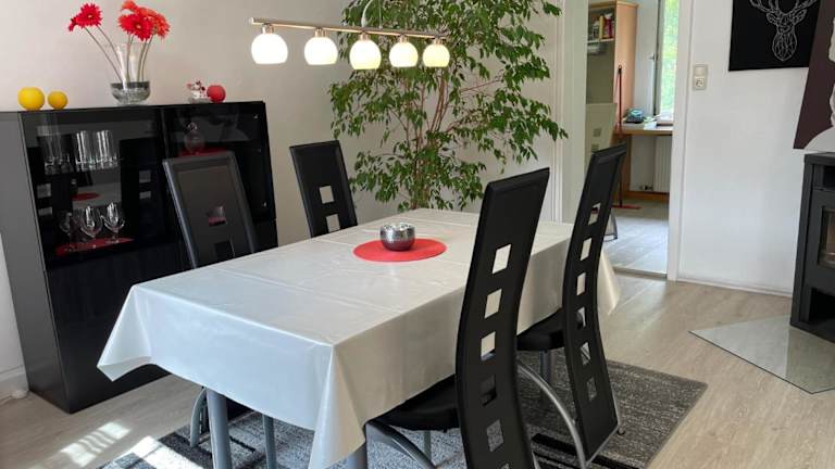 Die Ferienwohnung verfügt über ein Schlafzimmer, ein Wohnzimmer, eine voll ausgestattete Küche mit Kühlschrank und Kaffeemaschine sowie ein Badezimmer mit Badewanne und Haartrockner. Handtücher und Bettwäsche werden bereitgestellt.