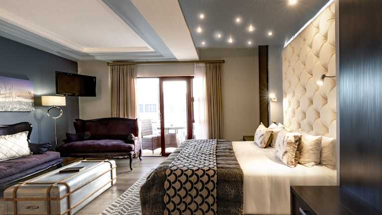 Das Swakopmund Sands Hotel bietet stilvolle Zimmer, die modern und elegant eingerichtet sind. Jedes Zimmer verfügt über Annehmlichkeiten wie einen Flachbild-Sat-TV, einen Schreibtisch und einen Safe. Einige Zimmer bieten zudem einen Meerblick und einen separaten Sitzbereich.