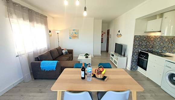 Sweet Beach Flat - Sea View-WIFI-AC - Alvor bietet einen Balkon mit Blick auf die Stadt und das Meer. Die Unterkunft verfügt über kostenloses WLAN und ist klimatisiert. Sie umfasst ein Schlafzimmer, ein Wohnzimmer sowie eine voll ausgestattete Küche.