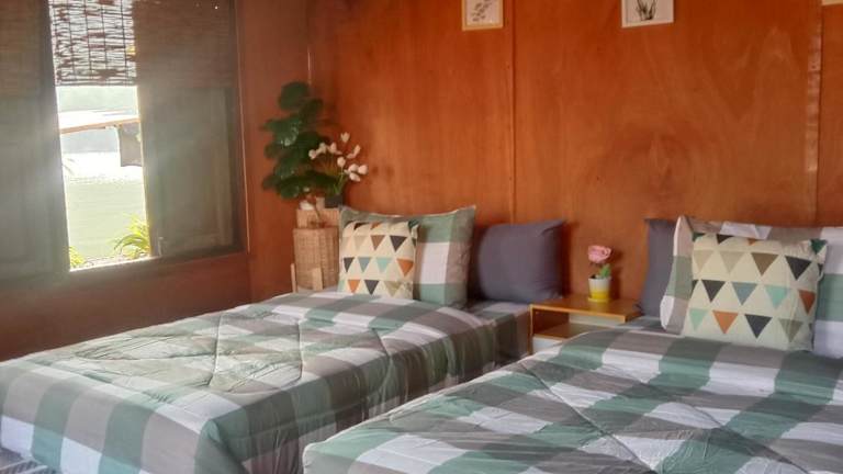 Das Sweet Home Floating House in Ban Lum Le bietet eine einzigartige und idyllische Unterkunft, umgeben von Wasser und Natur. Mit einem Restaurant, einer Sonnenterrasse und Wassersporteinrichtungen können Sie hier einen erholsamen Urlaub genießen. Die Zimmer bieten einen herrlichen Blick auf den See oder den Garten und verfügen über Zugang zu einem Gemeinschaftsbad. Das freundliche Personal steht Ihnen rund um die Uhr zur Verfügung und ein Fahrradverleih steht Ihnen ebenfalls zur Verfügung. Die Umgebung eignet sich perfekt zum Radfahren und Angeln, und der beeindruckende Wasserfall Huay Mae Kamin ist nur eine kurze Bootsfahrt oder Autofahrt entfernt.