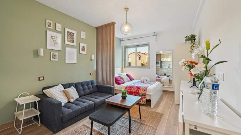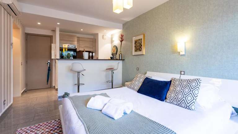 Die Unterkunft befindet sich in Juan-les-Pins, 100 Meter vom Strand Promenade du Soleil entfernt. Der Palais des Festivals et des Congrès liegt in einer Entfernung von 10 km. Der nächstgelegene Flughafen ist der Aéroport Nice Côte d’Azur, der sich 16 km von der Unterkunft entfernt befindet.