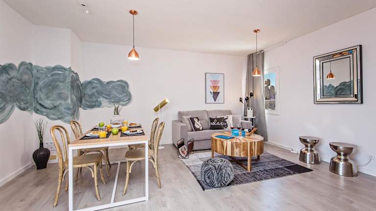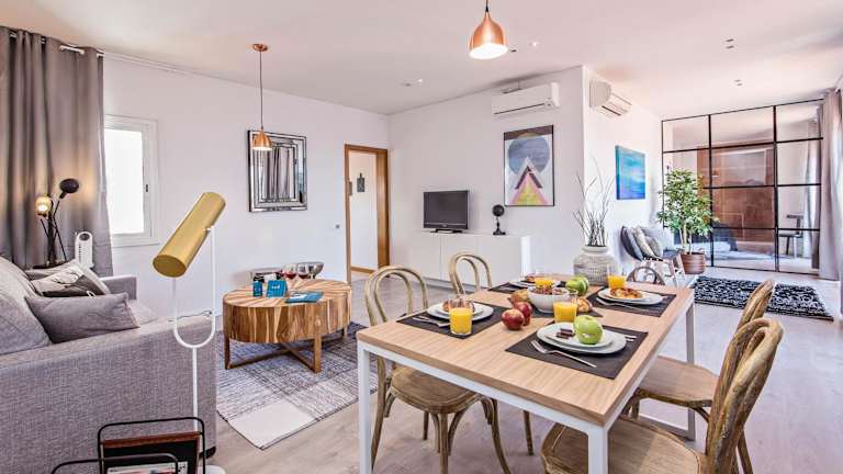 Das Sweet Inn - Pedrera Department 24 ist ein klimatisiertes Apartment mit 2 Schlafzimmern, einem Wohnzimmer und einer voll ausgestatteten Küche. Die Küche verfügt über einen Kühlschrank und eine Kaffeemaschine, so dass die Gäste ihre Mahlzeiten bequem zubereiten können. Das Apartment verfügt über ein Badezimmer mit Dusche und kostenlosen Pflegeprodukten. Handtücher und Bettwäsche werden gestellt, um den Gästen einen komfortablen Aufenthalt zu ermöglichen.