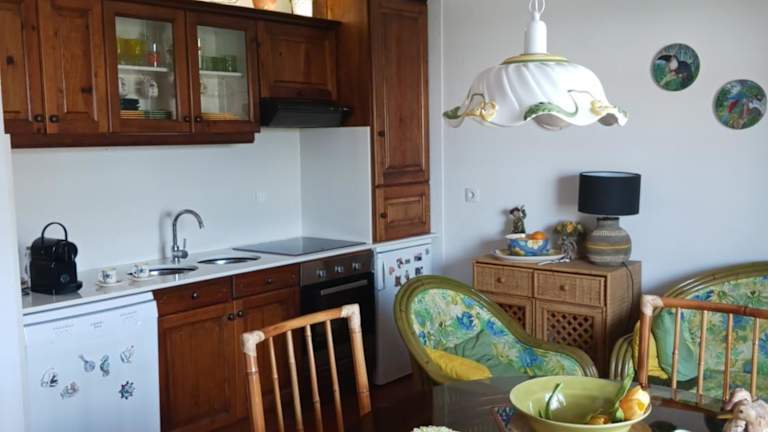 Die Ferienwohnung umfasst zwei Schlafzimmer, ein Wohnzimmer, eine gut ausgestattete Küche, ein Badezimmer mit Bidet und Badewanne sowie einen Balkon mit Meerblick. Zur Ausstattung gehören ein Satelliten Flachbild-TV, Handtücher und Bettwäsche.