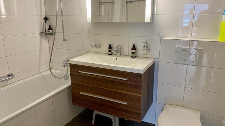 Die Ferienwohnung umfasst ein Schlafzimmer, ein Wohnzimmer, eine voll ausgestattete Küche mit Kühlschrank und Kaffeemaschine sowie ein Badezimmer mit Badewanne und Haartrockner. Handtücher und Bettwäsche werden bereitgestellt. Zudem sind die Zimmer klimatisiert und allergikerfreundlich.