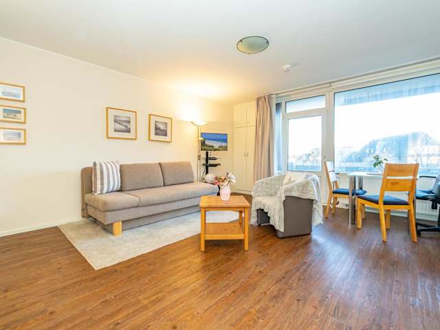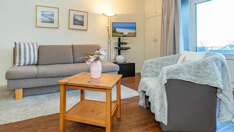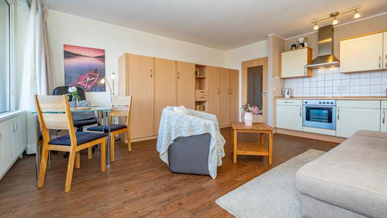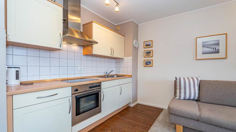Das Apartment im Sylter-Krabbe verfügt über ein geräumiges Wohnzimmer und eine voll ausgestattete Küchenzeile mit Kühlschrank und Backofen. Handtücher und Bettwäsche werden gestellt, so dass Sie sich um nichts kümmern müssen.