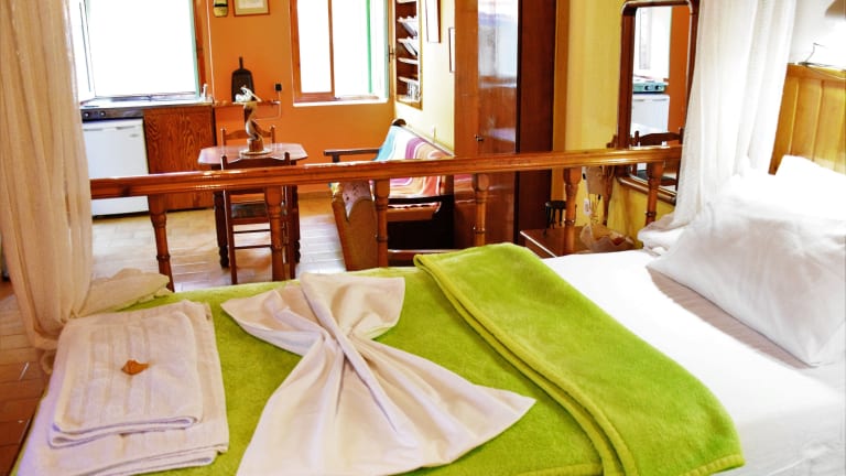 Die Symi Garden Studios sind in fröhlichen Farben gehalten und verfügen über traditionelle Gestaltungselemente wie Holzbalkendecken und Einbaubetten. Jedes Studio ist mit einer Küchenzeile ausgestattet, so dass Sie Ihre Mahlzeiten bequem zubereiten können. Zur weiteren Ausstattung gehören eine Klimaanlage, ein Fernseher und ein Haartrockner. Ein Safe steht Ihnen ebenfalls zur Verfügung, um Ihre Wertsachen sicher aufzubewahren. Von jedem Studio aus genießen Sie eine wunderschöne Aussicht, die Ihnen den Charme der Insel näher bringt.