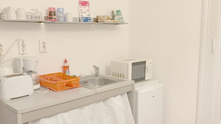 Eine Gemeinschaftsküche steht den Gästen zur Verfügung, die mit einem Wasserkocher, Kühlschrank, Toaster, Mikrowelle und Kaffeemaschine ausgestattet ist. Es sind keine spezifischen Verpflegungsmöglichkeiten angegeben.