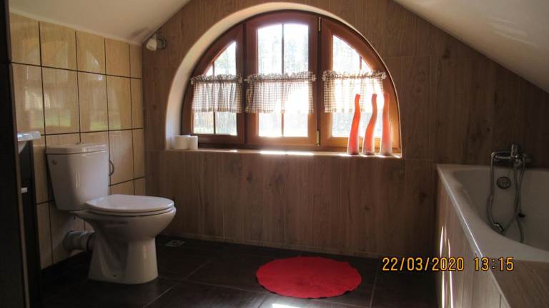 Das Apartment im Szumi Las verfügt über ein gemütliches Schlafzimmer, ein Wohnzimmer mit einem Flachbild-TV und eine gut ausgestattete Küchenzeile mit Kühlschrank und Mikrowelle. Das Badezimmer ist mit einer Badewanne ausgestattet und Handtücher und Bettwäsche werden gestellt. Von der Terrasse aus können Sie den Blick auf den Garten genießen.