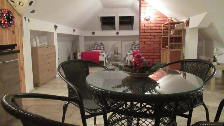 Im Szumi Las können Sie Ihre eigenen Mahlzeiten zubereiten, da das Apartment über eine voll ausgestattete Küchenzeile verfügt. Alternativ können Sie auch die Grillmöglichkeiten im Garten nutzen und im Freien speisen.