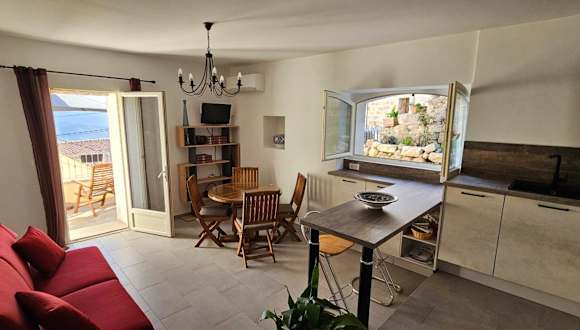 T2 typique au cœur du village et vue sur le Golfe bietet einen Garten, eine Terrasse und eine Bar. Die Unterkunft bietet kostenfreies WLAN und beeindruckt mit einem Blick auf das Meer und die Berge.