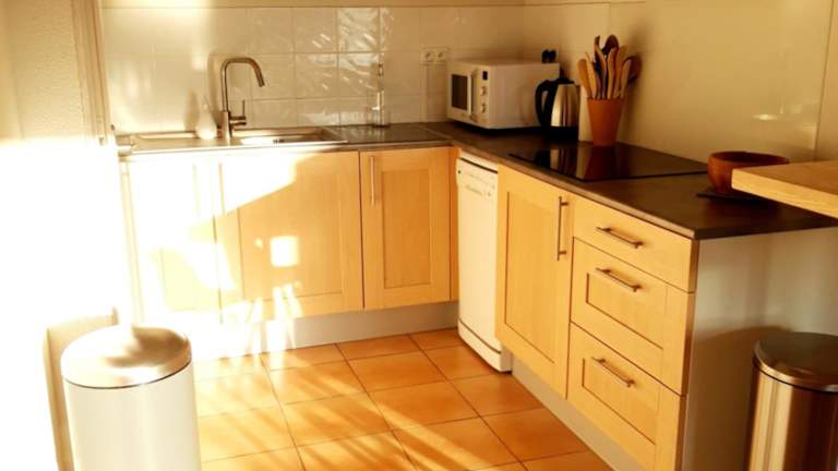 Die Ferienwohnung umfasst zwei Schlafzimmer, ein Wohnzimmer mit Flachbild-TV, eine gut ausgestattete Küche mit Kühlschrank und Geschirrspüler sowie ein Badezimmer mit Badewanne. Eine Terrasse mit Stadtblick und Gartenmöbel sind ebenfalls vorhanden.
