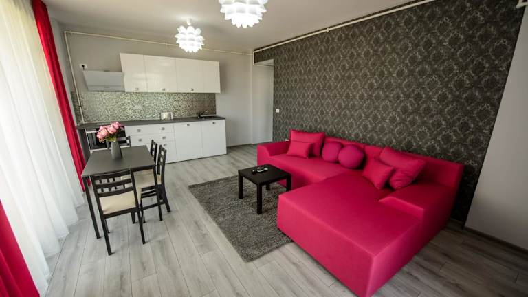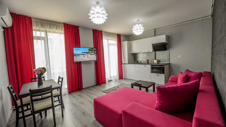 Erleben Sie einen unvergesslichen Aufenthalt in der TABU Residence mit Seeblick. Das klimatisierte Apartment bietet eine komfortable Unterkunft mit einem Garten und einem Balkon. Profitieren Sie von Privatparkplätzen und kostenfreiem WLAN. Die Lage der Unterkunft ist ideal, nur 1,5 km vom Yachthafen Regia und 1,4 km vom Strand Mamaia entfernt. Das Apartment verfügt über eine Terrasse mit Stadtblick, ein Schlafzimmer, ein Wohnzimmer, einen Flachbild-TV und eine voll ausgestattete Küchenzeile. Handtücher und Bettwäsche werden gestellt. Nutzen Sie die Gelegenheit zum Angeln in der Umgebung und besuchen Sie den Strand Phoenicia, der nur 1,8 km entfernt ist. Der internationale Flughafen Constanța ist 23 km von der TABU Residence entfernt.