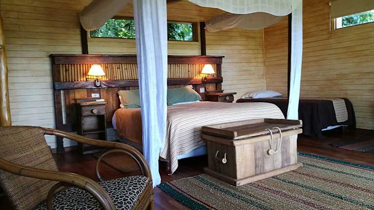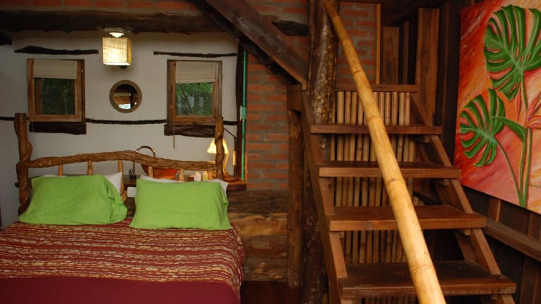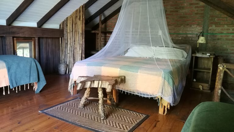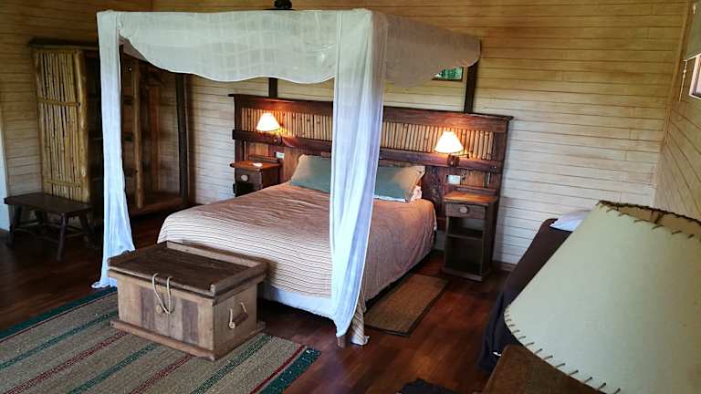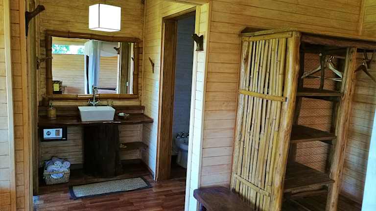 Die klimatisierten Hütten der Tacuapí Lodge sind ein echtes Highlight. Sie sind aus Recycling-Holz und Tabakblättern gebaut und bieten somit nicht nur modernen Komfort, sondern auch eine ökologische Bauweise. Die bunte Bettwäsche und das farbenfrohe Dekor verleihen den Hütten eine charmante Atmosphäre. Jede Hütte verfügt über einen hohen Balkon mit Blick auf den Salto Encantado Park, einen separaten Wohnbereich und einige bieten sogar eine eigene Whirlpool-Badewanne.