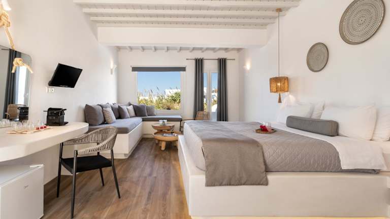 Die Tagoo Studios Mykonos bieten individuell eingerichtete Zimmer und Suiten mit eigenem Balkon, der einen atemberaubenden Blick auf das Meer oder den Garten bietet. Die Zimmer sind mit Klimaanlage, einem Flachbild-TV, einem Kühlschrank und einem Wasserkocher ausgestattet. Im eigenen Bad finden Sie eine Dusche, einen Haartrockner und kostenfreie Pflegeprodukte. Ein Safe ist ebenfalls vorhanden und auf Anfrage können Sie ein Bügeleisen erhalten. Kostenloses WLAN steht Ihnen in allen Bereichen zur Verfügung.