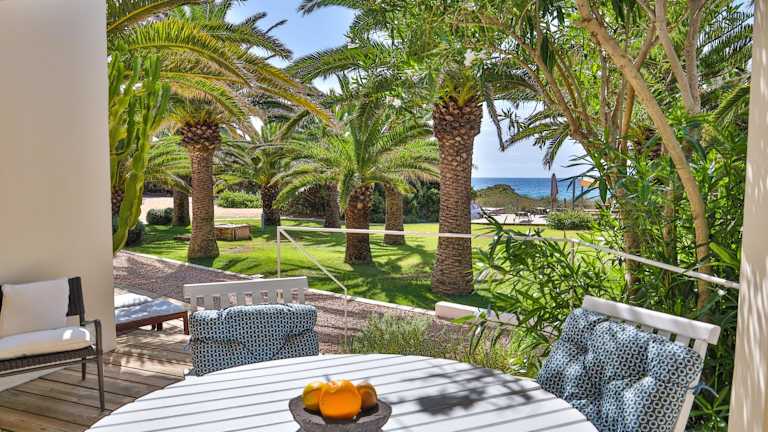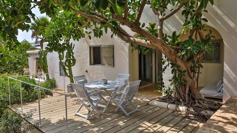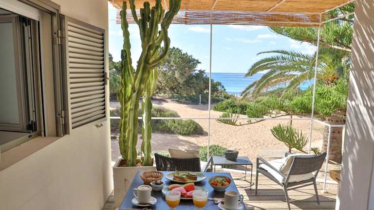 Das Hotel Talaya Formentera liegt direkt am Strand Playa de Migjorn und bietet somit einen einfachen Zugang zu einem der schönsten Strände der Insel. Die Umgebung ist von üppigen Gärten umgeben und bietet eine ruhige und entspannte Atmosphäre. In der Nähe des Hotels finden Sie verschiedene Strandclubs, in denen Sie SonnenanbeterInnen und Badegäste treffen können. La Savina, die größte Stadt auf Formentera, ist nur eine kurze Autofahrt entfernt und bietet eine Vielzahl von Einkaufs- und Unterhaltungsmöglichkeiten.