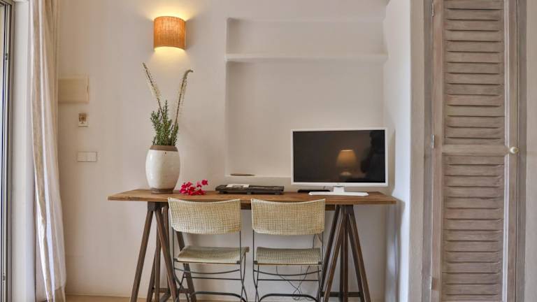 Das Hotel Talaya Formentera bietet klimatisierte Studios und Apartments, die alle über eine Terrasse verfügen. Die Unterkünfte sind geschmackvoll eingerichtet und verfügen über einen separaten Essbereich sowie eine ausgestattete Küchenzeile. Hier können Sie Ihre eigenen Mahlzeiten zubereiten und auf der Terrasse genießen. Die Zimmer bieten Ihnen somit die Flexibilität, Ihren Urlaub nach Ihren eigenen Vorstellungen zu gestalten.
