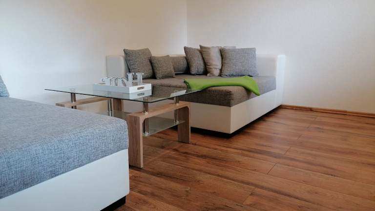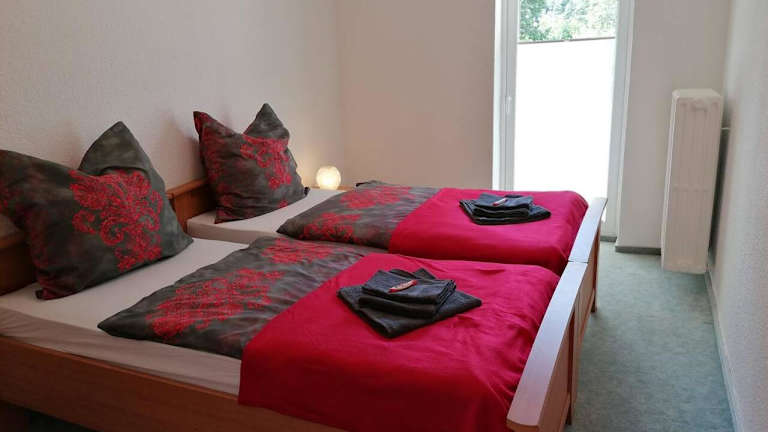 Die Ferienwohnung besteht aus zwei Schlafzimmern, einem Wohnzimmer und einer voll ausgestatteten Küche, die mit einem Kühlschrank und einer Kaffeemaschine ausgestattet ist. Ein Badezimmer mit Badewanne oder Dusche und Haartrockner ist ebenfalls vorhanden. Zudem werden Handtücher und Bettwäsche bereitgestellt.