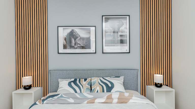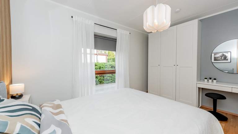 Die Ferienwohnung umfasst ein Schlafzimmer, ein Wohnzimmer und eine voll ausgestattete Küche mit Kühlschrank und Kaffeemaschine. Das Badezimmer ist mit einer Dusche und einem Haartrockner ausgestattet. Handtücher und Bettwäsche werden bereitgestellt. Die Zimmer sind schallisoliert und mit Klimaanlage sowie Heizung ausgestattet.