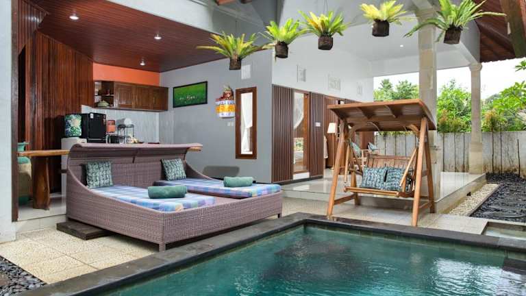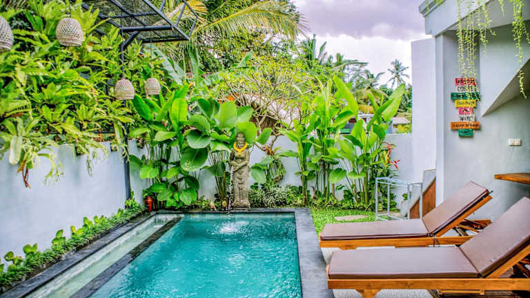 Die Umgebung der Tamyang Ubud Villas lädt zum Radfahren ein, und die Unterkunft bietet einen Fahrradverleih für Gäste, die die Umgebung auf zwei Rädern erkunden möchten. Für weitere Ausflüge steht Ihnen auch eine Autovermietung zur Verfügung. Entspannen Sie am Außenpool oder erkunden Sie die schöne Umgebung der Villas.