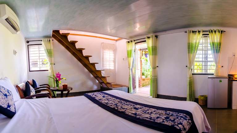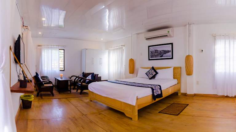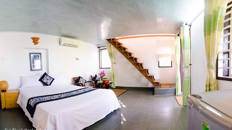 Die klimatisierten Zimmer im Tan Thanh Garden Homestay sind komfortabel und bieten einen Balkon mit Meerblick. Zur Ausstattung gehören ein Flachbild-Kabel-TV, eine Minibar und ein Esstisch. Das private Badezimmer verfügt über eine Dusche, einen Haartrockner und kostenlose Pflegeprodukte. Die Zimmer sind geschmackvoll eingerichtet und bieten Ihnen einen gemütlichen Rückzugsort während Ihres Aufenthalts.