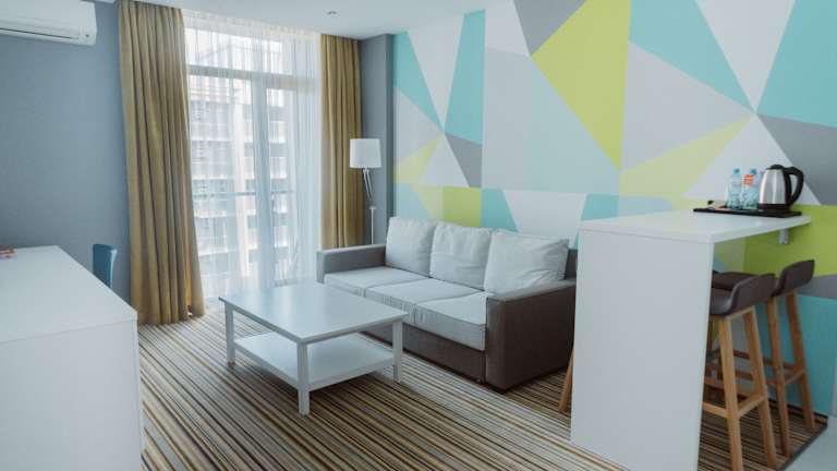 Das Tangerine Apart Hotel befindet sich in zentraler Lage in Batumi. Die Umgebung bietet eine Vielzahl von Restaurants, Geschäften und Unterhaltungsmöglichkeiten. Der Strand ist nur wenige Gehminuten entfernt und die Sehenswürdigkeiten der Stadt sind ebenfalls gut erreichbar.