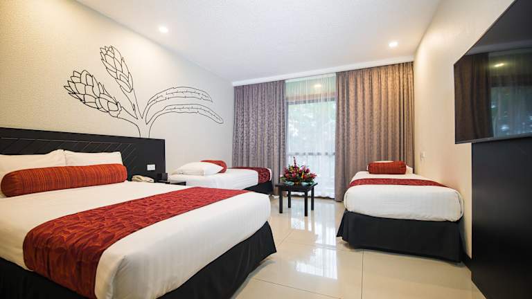 Die Zimmer im Tanoa International Hotel bieten einen eigenen Balkon mit Blick auf die tropischen Gärten. Jedes Zimmer ist mit einem Flachbild-Kabel-TV, Klimaanlage und einem Kühlschrank ausgestattet. Vom Balkon aus können Sie den Blick auf den Garten oder die Berge genießen.