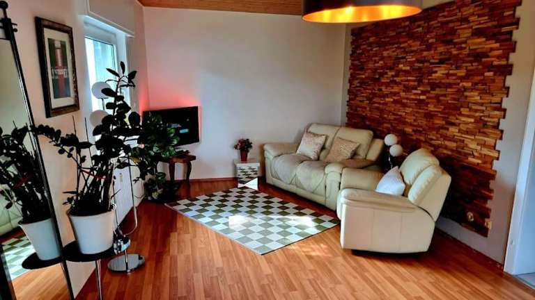 Eine Oase bei Tara in Waldacker bietet Übernachtungsmöglichkeiten mit Gartenblick und umfasst eine Ferienwohnung mit zwei Schlafzimmern, einem Wohnzimmer und einer komplett ausgestatteten Küche. Die Unterkunft verfügt über zwei Badezimmer, in denen eine Dusche und kostenlose Pflegeprodukte bereitgestellt werden. Die Unterkunft wird von einem privaten Gastgeber geführt und bietet verschiedene Annehmlichkeiten.