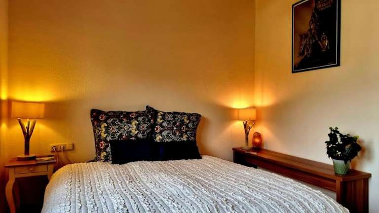 Die Ferienwohnung umfasst zwei Schlafzimmer, ein Wohnzimmer sowie eine voll ausgestattete Küche, die mit einem Kühlschrank und einer Kaffeemaschine ausgestattet ist. Bettwäsche und Handtücher werden zur Verfügung gestellt, und es stehen zwei Badezimmer mit Dusche und kostenlosen Pflegeprodukten zur Verfügung.