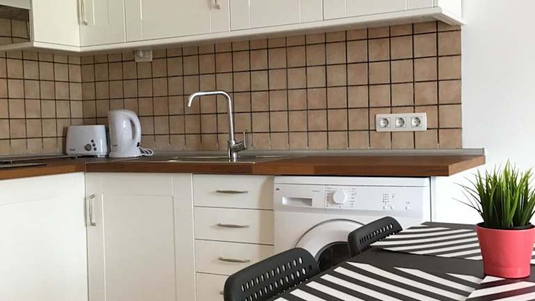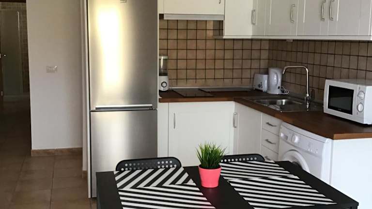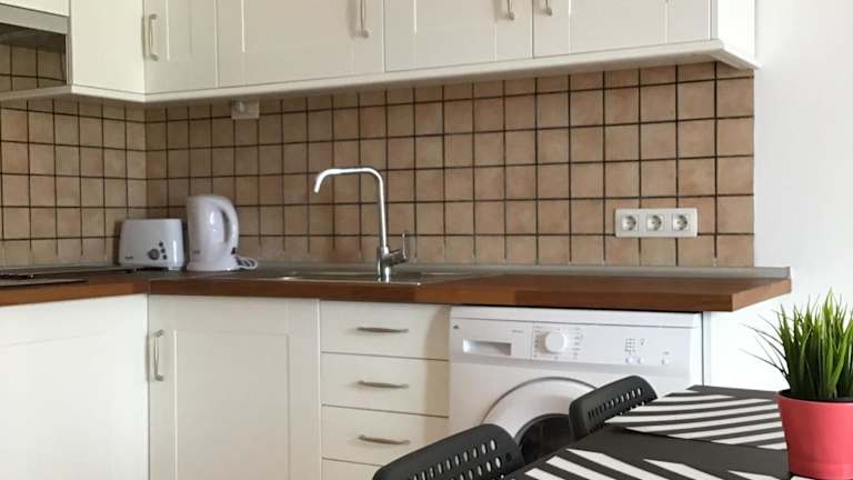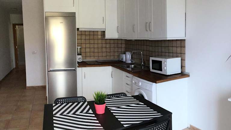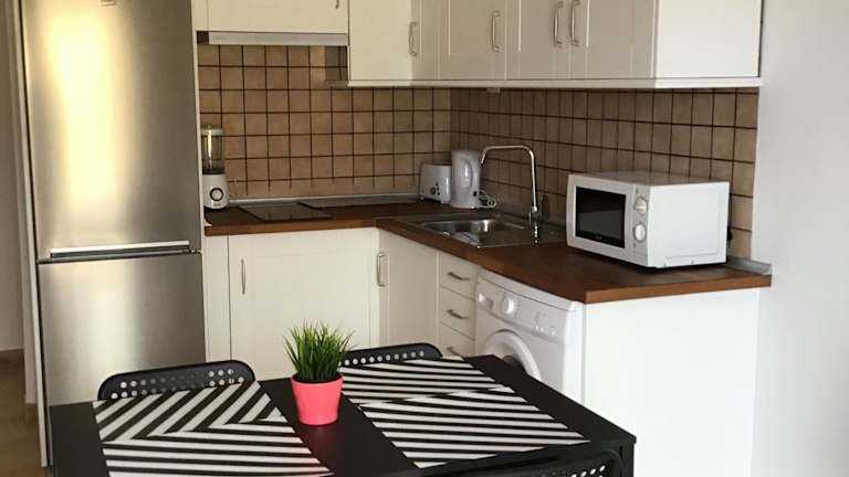 Die Unterkunft ist mit einer Küche ausgestattet, die über einen Kühlschrank und eine Mikrowelle verfügt. Es werden keine weiteren Verpflegungsmöglichkeiten beschrieben.