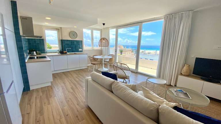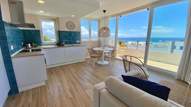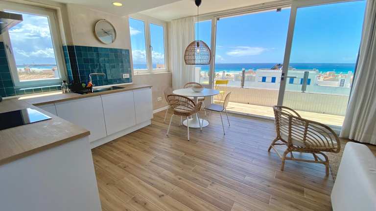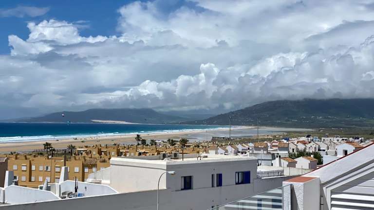 Tarifa Cozy House - Penthouse Humero 270º bietet Übernachtungsmöglichkeiten mit Blick auf die Stadt sowie einem Balkon. Die Ferienwohnung ist klimatisiert und verfügt über eine voll ausgestattete Küche.