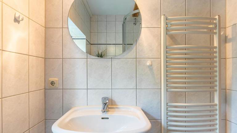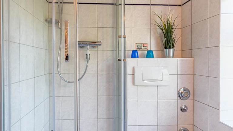 Die Wohnung umfasst ein Badezimmer mit Dusche und Haartrockner sowie einen Wohnbereich mit TV. Die Zimmer sind funktional ausgestattet und bieten ausreichend Platz und Komfort.