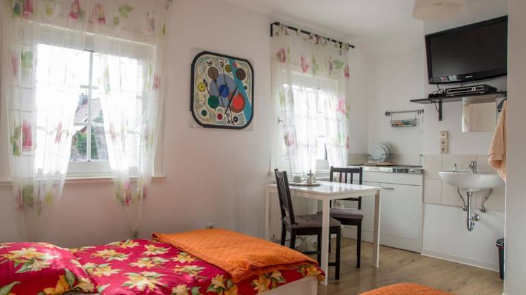 Das Tasca im Feui Apartments ist eine Unterkunft zur Selbstverpflegung in Stuttgart, die mit einem Restaurant und kostenfreiem WLAN punktet. Die geräumigen Apartments bieten einen gemütlichen Sitzbereich und eine gut ausgestattete Küchenzeile. Die Unterkunft befindet sich in der Nähe von Sehenswürdigkeiten wie der Porsche-Arena und den Cannstatter Wasen. Auch der zoologisch-botanische Garten Wilhelma und das Staatstheater sind nicht weit entfernt. Der Flughafen Stuttgart ist mit dem Auto in nur 11 km erreichbar.
