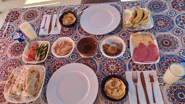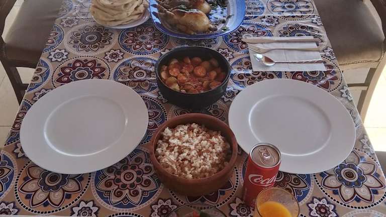 Das Tasneem Palace verfügt über eine Bar, in der die Gäste erfrischende Getränke genießen können. Alternativ können die Gäste ihre eigenen Mahlzeiten in der voll ausgestatteten Küche zubereiten. In der näheren Umgebung gibt es auch verschiedene Restaurants und Cafés, in denen die Gäste lokale und internationale Küche probieren können.
