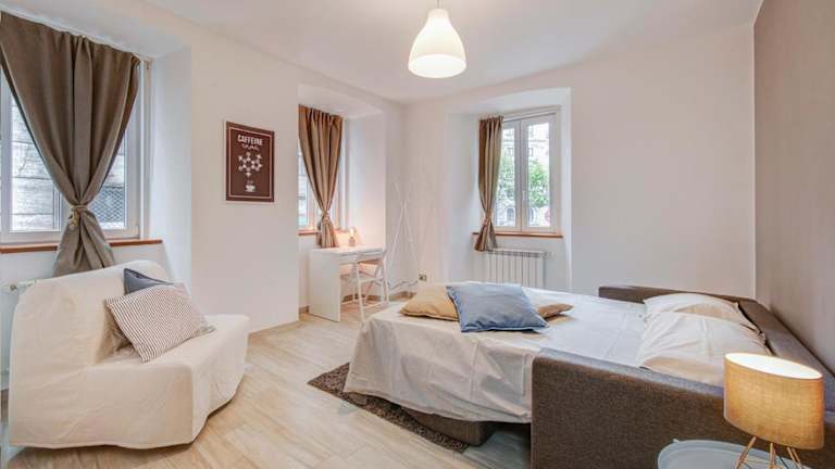 Das klimatisierte Apartment im Taste of Trieste Center bietet den Gästen ein komfortables und gemütliches Zuhause. Es verfügt über ein Schlafzimmer, ein Wohnzimmer und eine voll ausgestattete Küche mit Kühlschrank und Kaffeemaschine. Das Badezimmer ist mit einem Bidet und einer Dusche ausgestattet. Handtücher und Bettwäsche werden zur Verfügung gestellt, um den Aufenthalt so angenehm wie möglich zu gestalten.